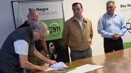 El gobierno provincial concretó la firma del contrato para ampliar el Centro de Monitoreo 911 en General Roca, con una inversión que asciende a los $125 millones. El acuerdo fue rubricado por los ministros Alejandro Echarren (Obras y Servicios Públicos) y Daniel Jara (Seguridad y Justicia) junto a representantes de la empresa INCO SRL, adjudicataria de los trabajos.