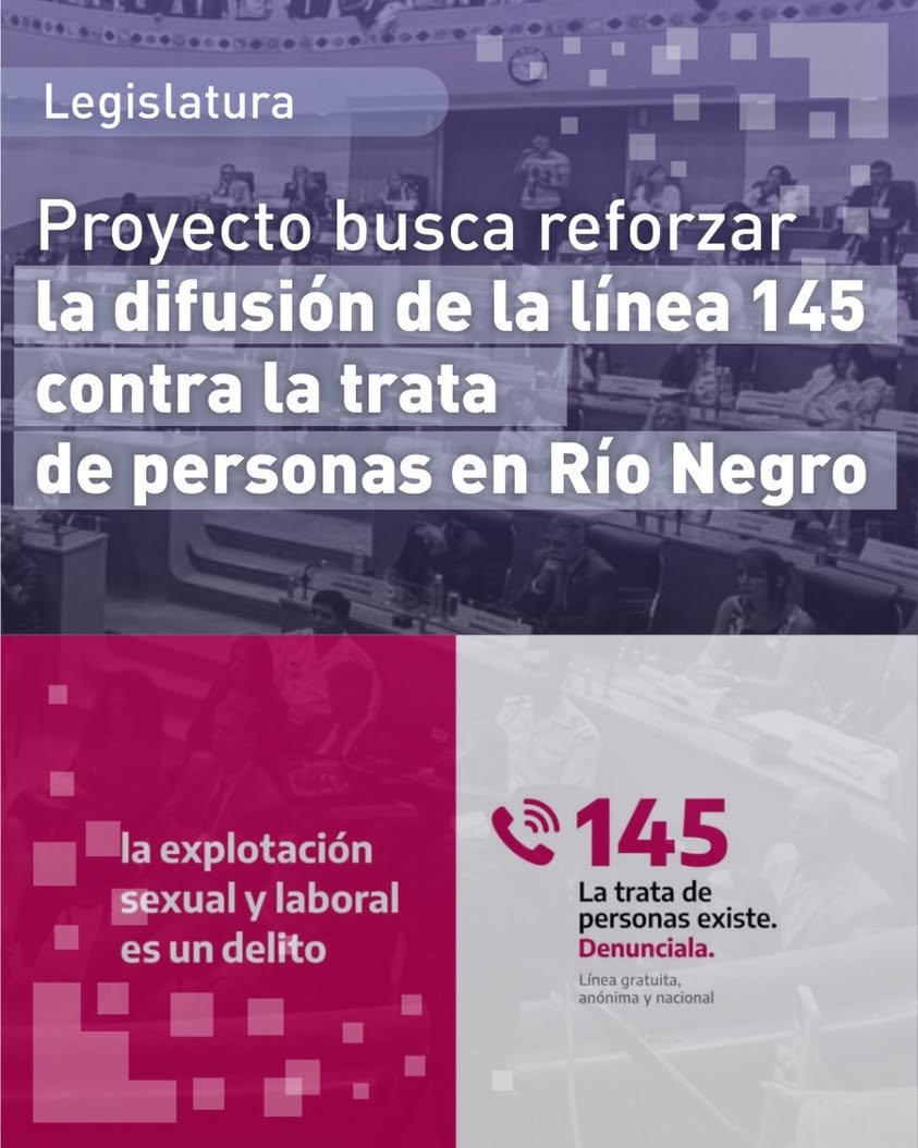 La diputada provincial Magdalena Odarda, del bloque Vamos con Todos, ingresó un proyecto de ley en la Legislatura rionegrina que establece la implementación obligatoria de cartelería informativa sobre la línea 145. Esta línea telefónica gratuita y anónima está destinada específicamente a recibir denuncias sobre situaciones de trata y explotación de personas.